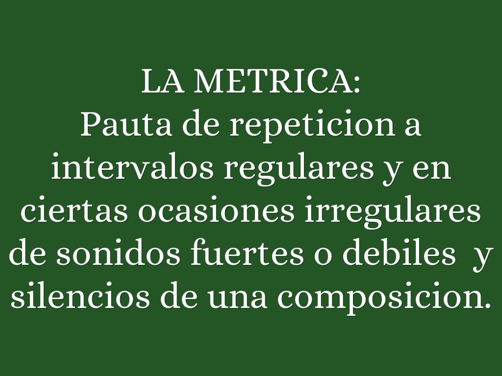 Pauta de repeticion a intervalos regulares y en ciertas ocasiones irregulares de sonidos fuertes o debiles y silencios de una composicion.