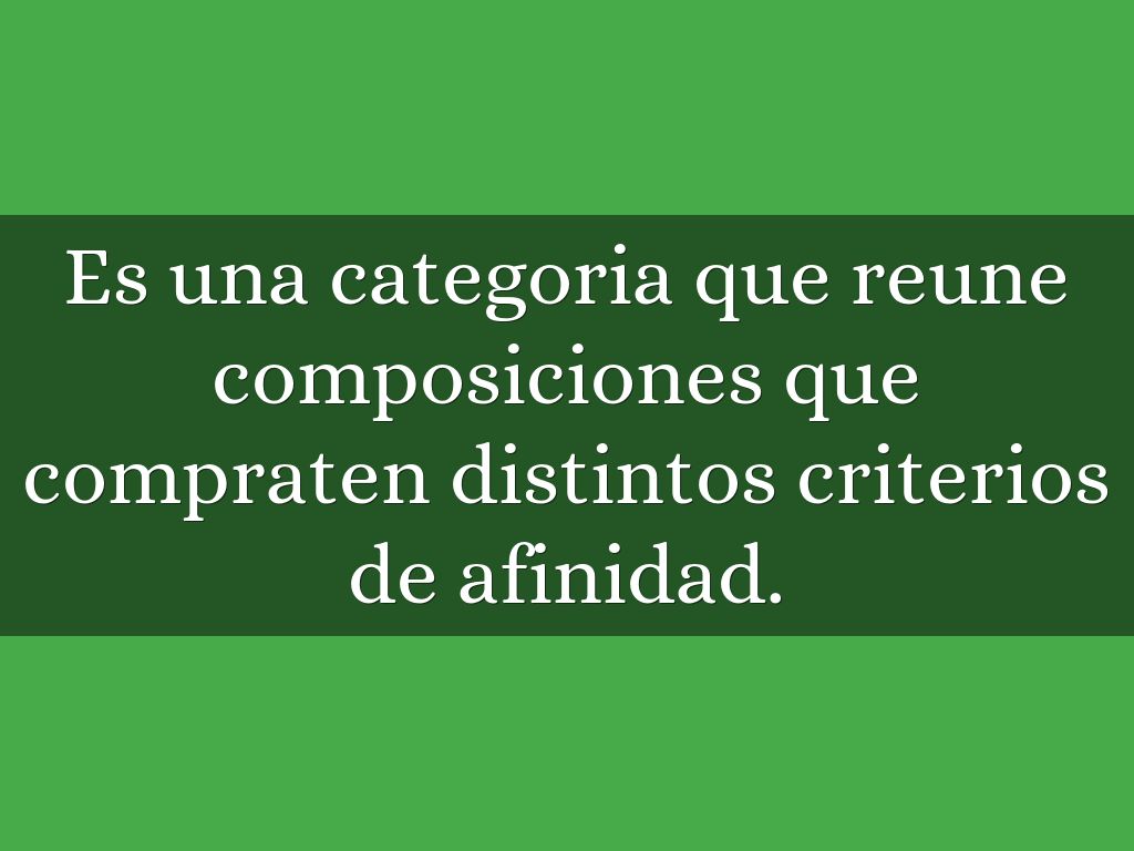 Es una categoria que reune composiciones que compraten distintos criterios de afinidad.