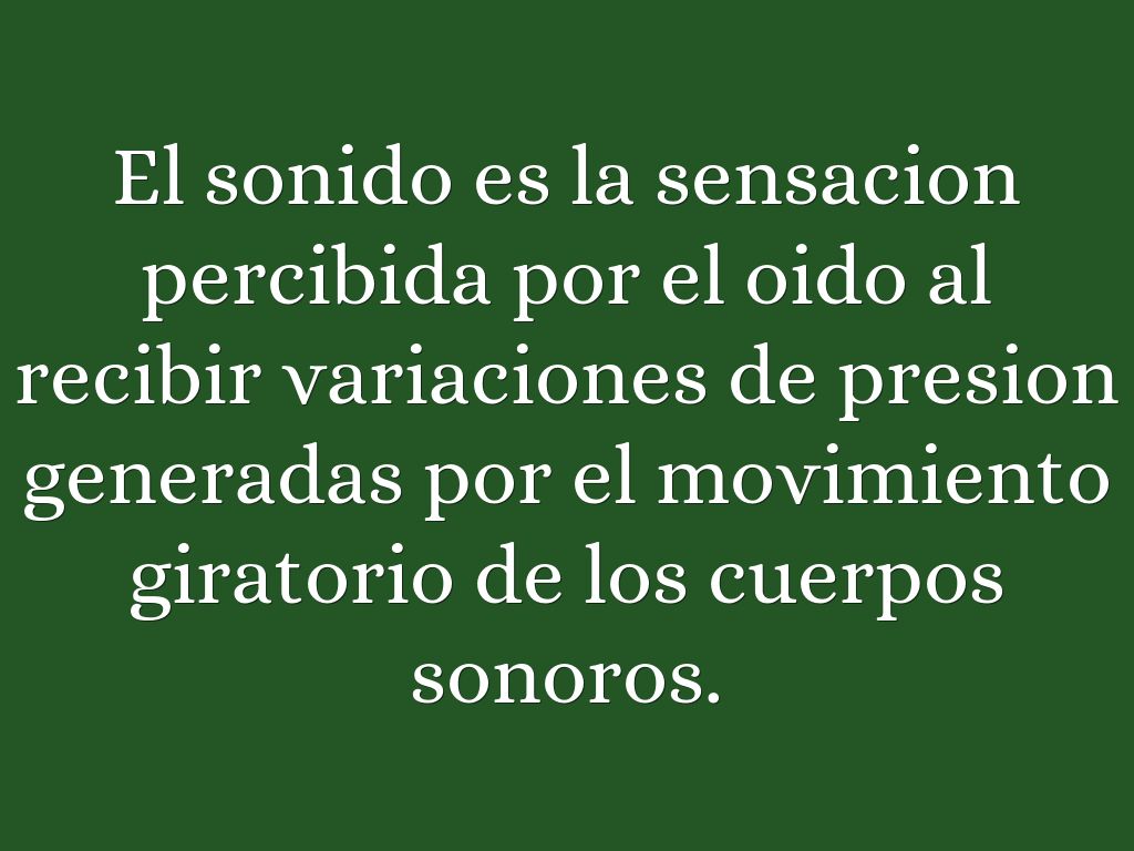 El sonido es la sensacion percibida por el oido al recibir variaciones de presion generadas por el movimiento giratorio de los cuerpos sonoros.