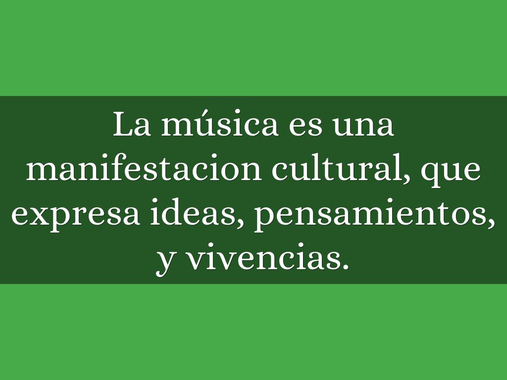 La música es una manifestacion cultural, que expresa ideas, pensamientos, y vivencias.