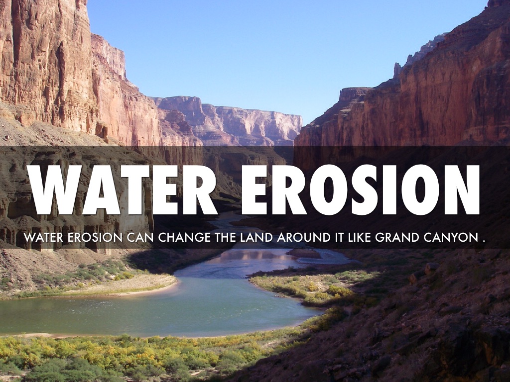 WATER EROSION CAN CHANGE THE LAND AROUND IT LIKE GRAND CANYON .