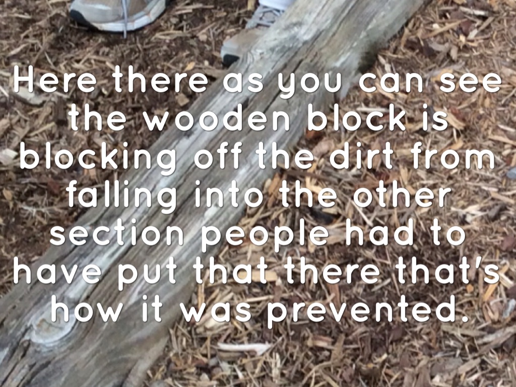 Here there as you can see the wooden block is blocking off the dirt from falling into the other section people had to have put that there that's how it was prevented.