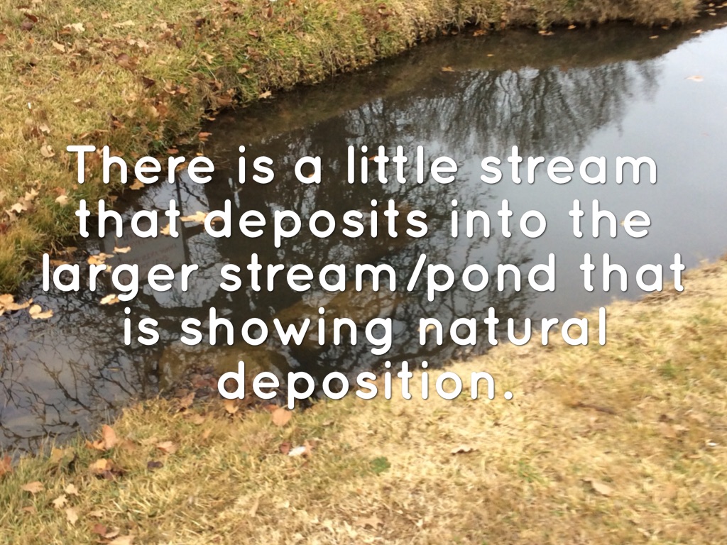 There is a little stream that deposits into the larger stream/pond that is showing natural deposition.