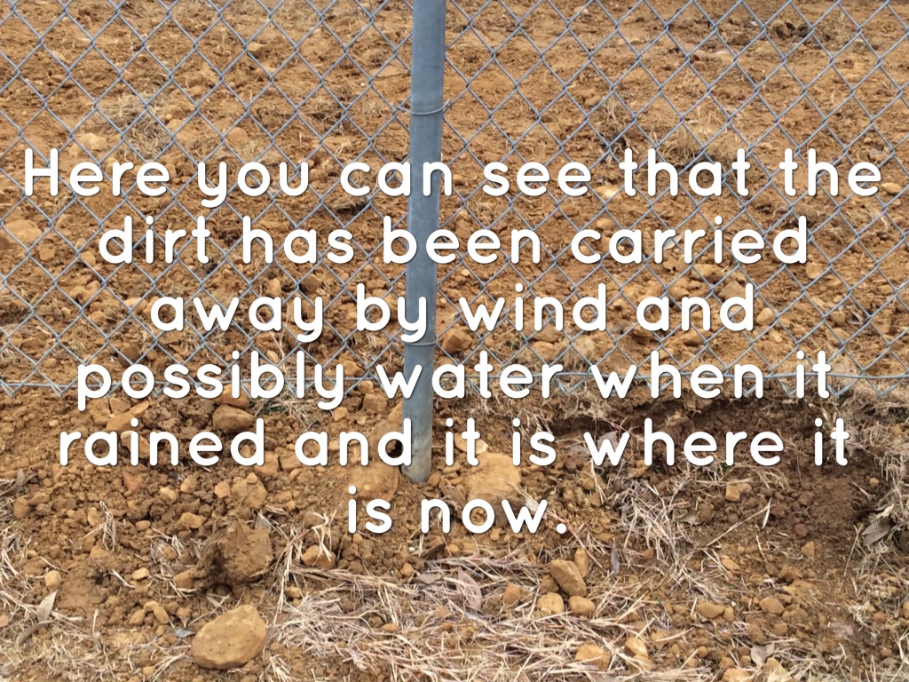 Here you can see that the dirt has been carried away by wind and possibly water when it rained and it is where it is now.