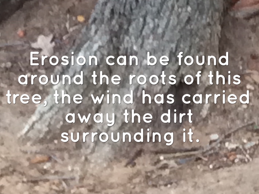 Erosion can be found around the roots of this tree, the wind has carried away the dirt surrounding it.