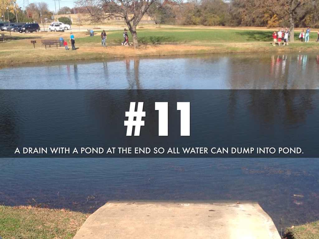 A DRAIN WITH A POND AT THE END SO ALL WATER CAN DUMP INTO POND.