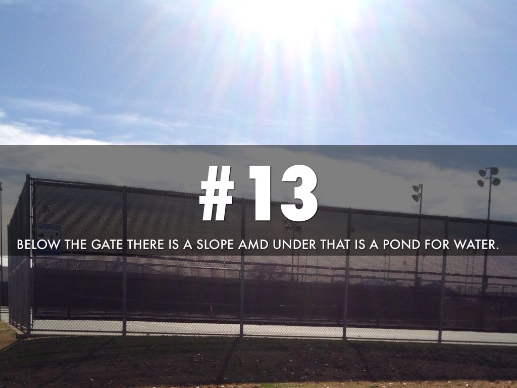 BELOW THE GATE THERE IS A SLOPE AMD UNDER THAT IS A POND FOR WATER.