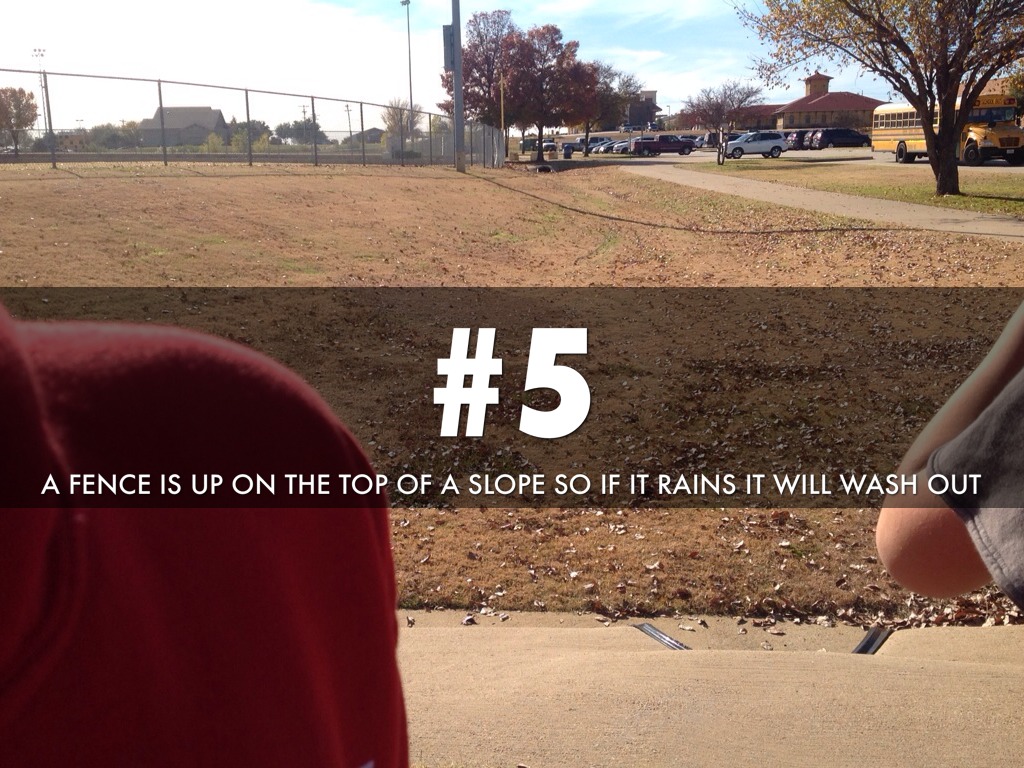 A FENCE IS UP ON THE TOP OF A SLOPE SO IF IT RAINS IT WILL WASH OUT