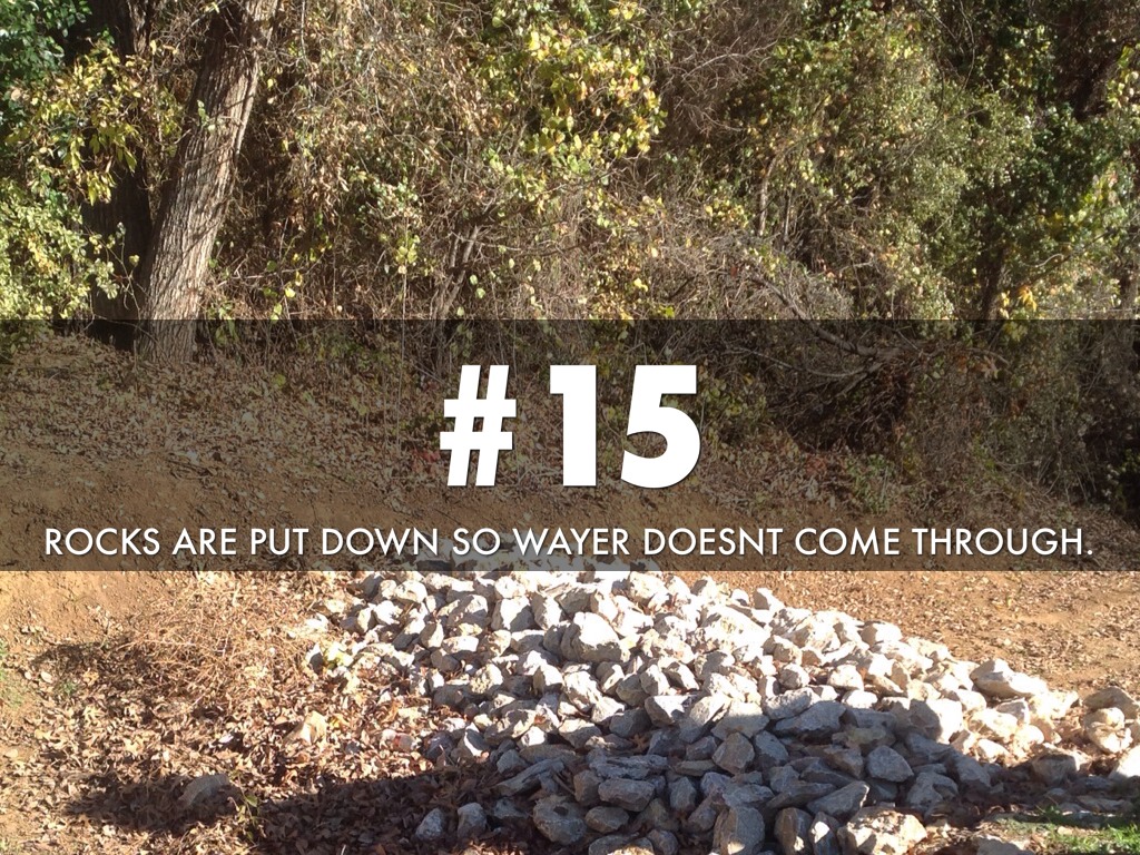 ROCKS ARE PUT IN TO STOP WATER FROM COMING THROUGH