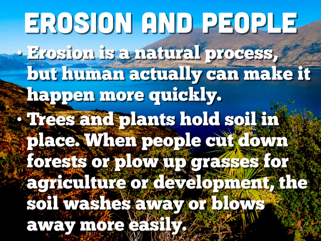 Erosion is a natural process, but human actually can make it happen more quickly.