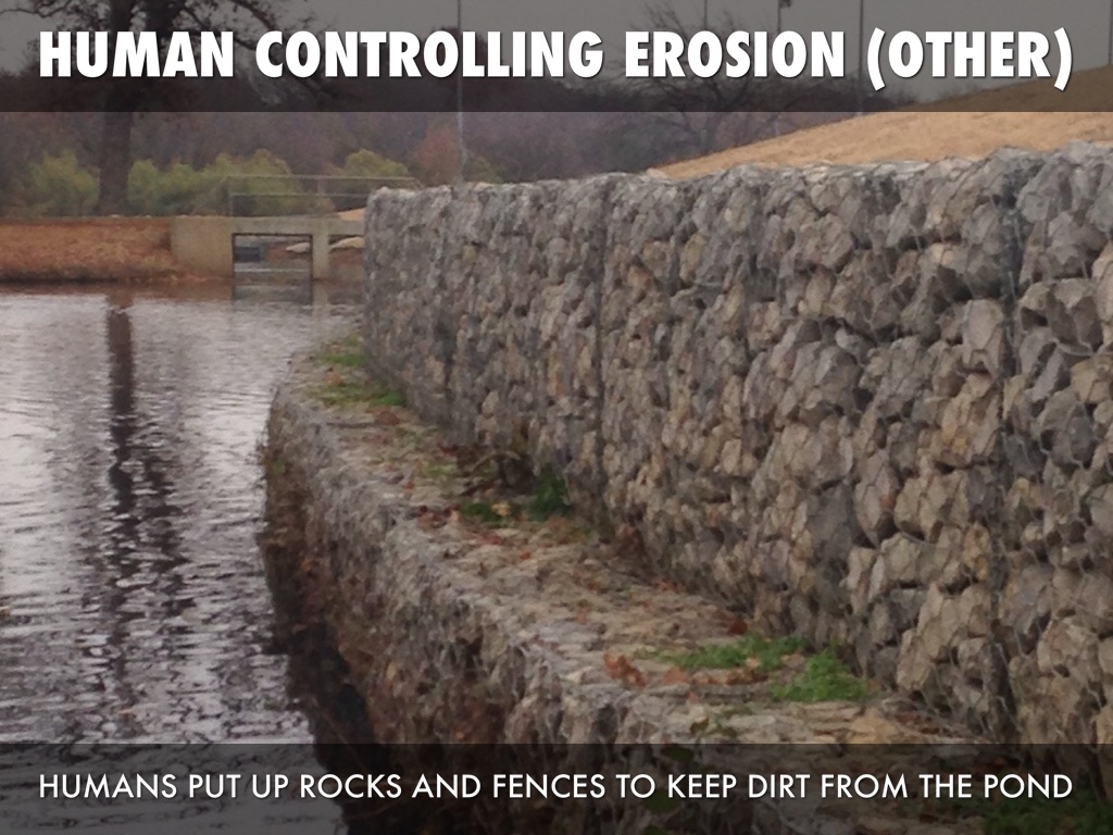HUMANS PUT UP ROCKS AND FENCES TO KEEP DIRT FROM THE POND