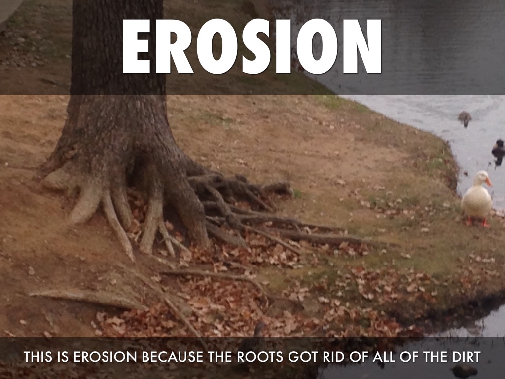 THIS IS EROSION BECAUSE THE ROOTS GOT RID OF ALL OF THE DIRT