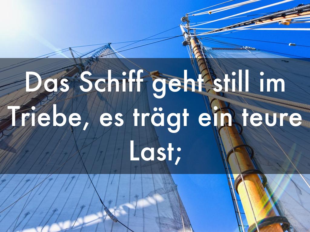 Das Schiff geht still im Triebe, es trägt ein teure Last;