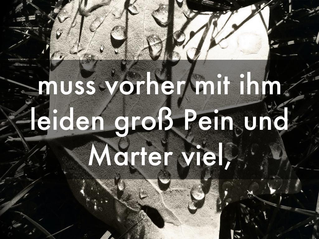 muss vorher mit ihm leiden groß Pein und Marter viel,
