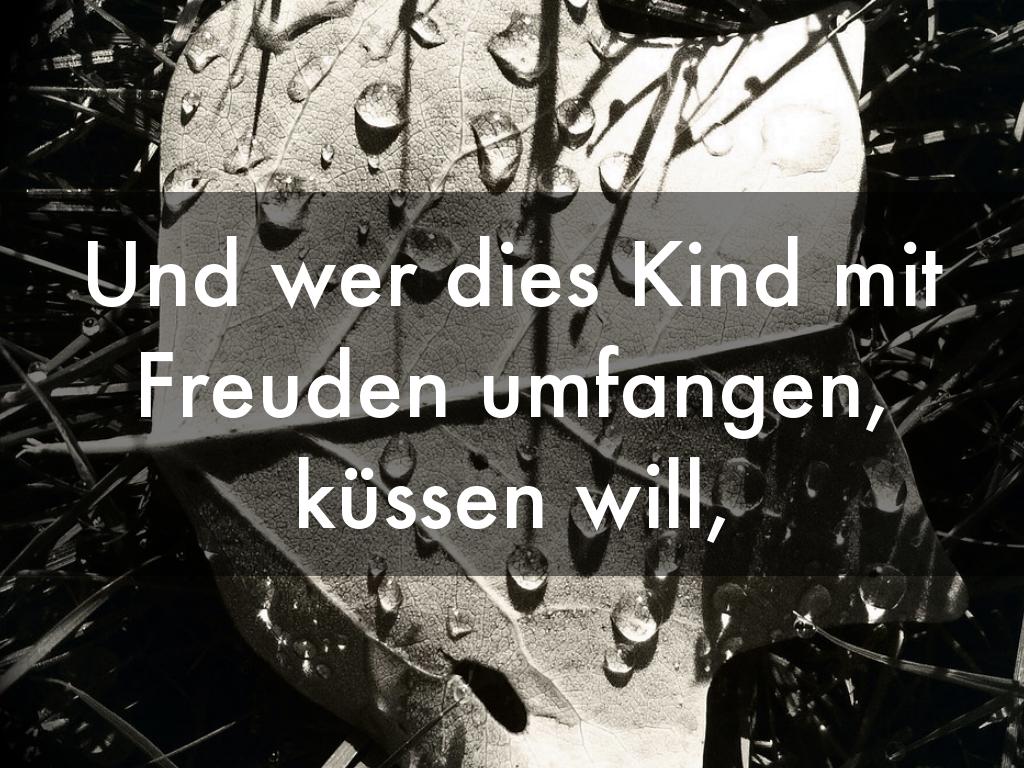 Und wer dies Kind mit Freuden umfangen, küssen will,
