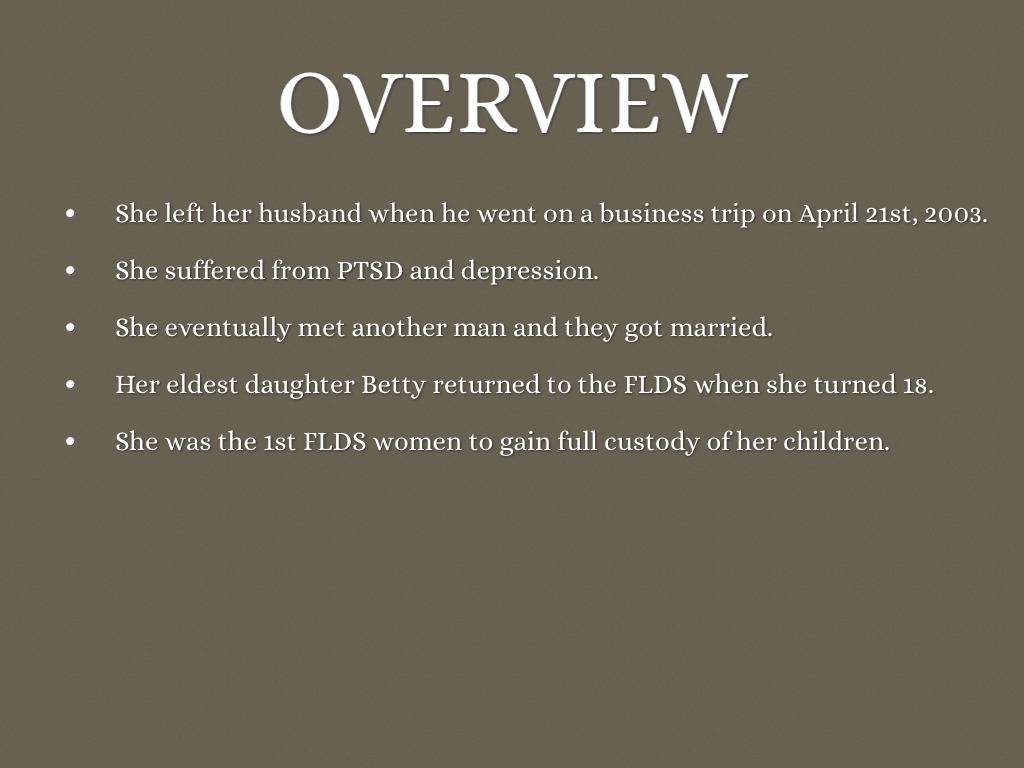 Her eldest daughter Betty returned to the FLDS when she turned 18.