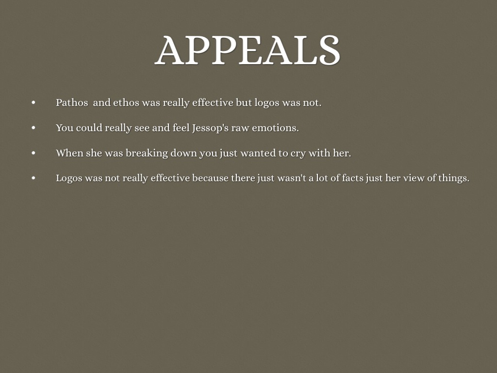 Logos was not really effective because there just wasn't a lot of facts just her view of things.