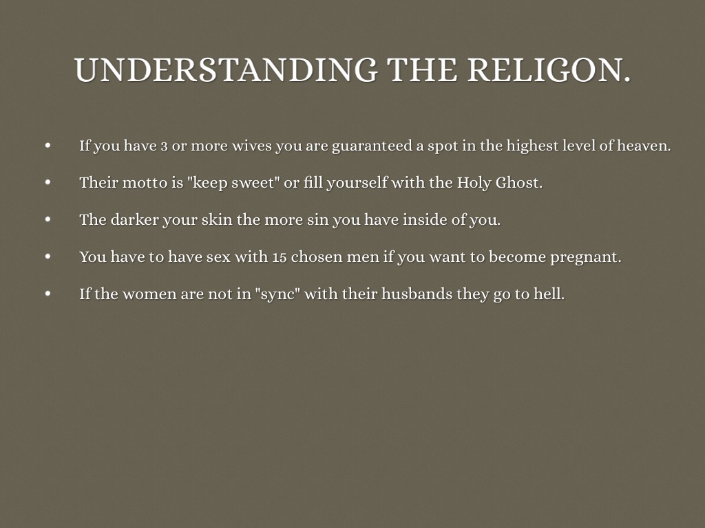 Their motto is "keep sweet" or fill yourself with the Holy Ghost.
