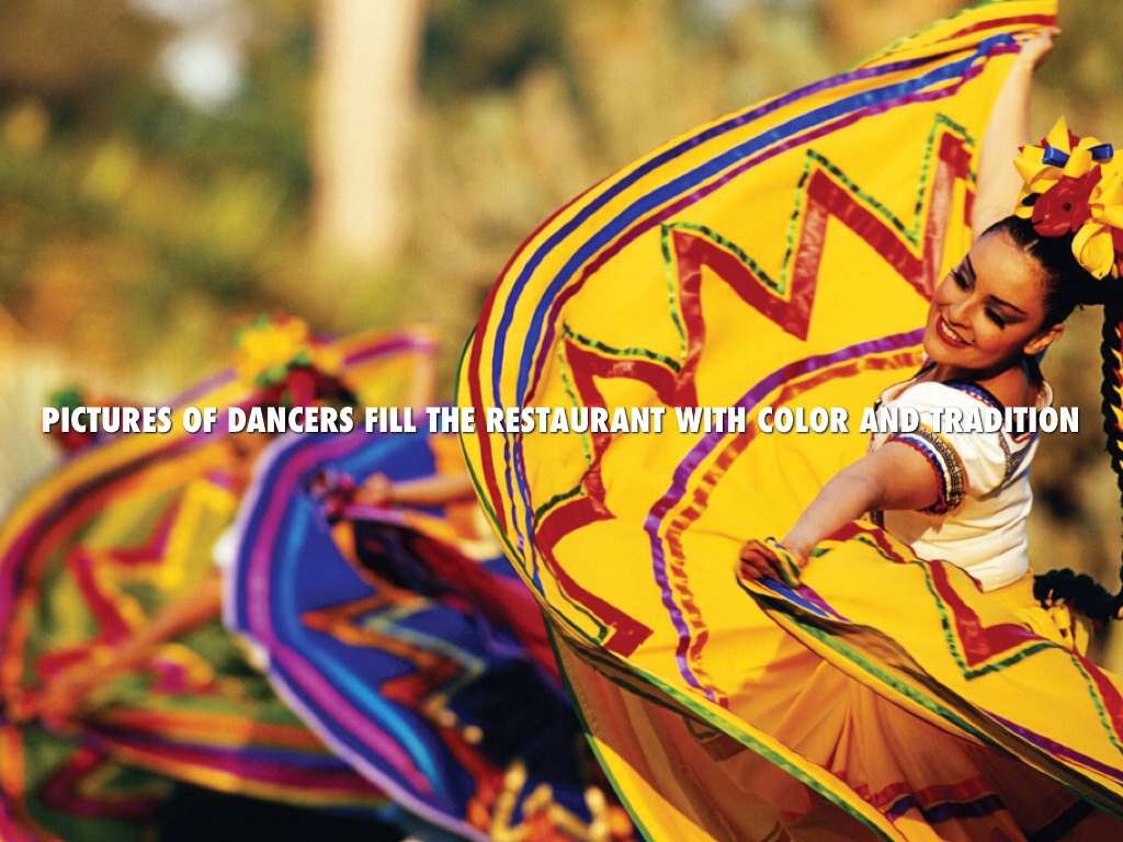 PICTURES OF DANCERS FILL THE RESTAURANT WITH COLOR AND TRADITION