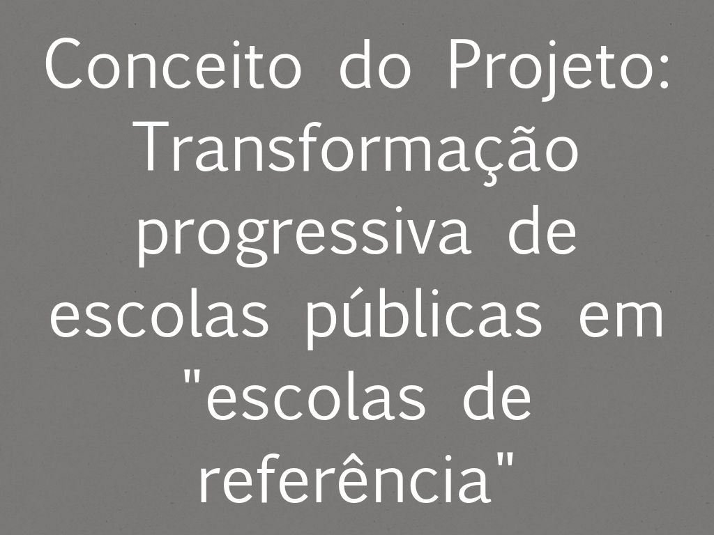Conceito do Projeto: Transformação progressiva de escolas públicas em "escolas de referência"
