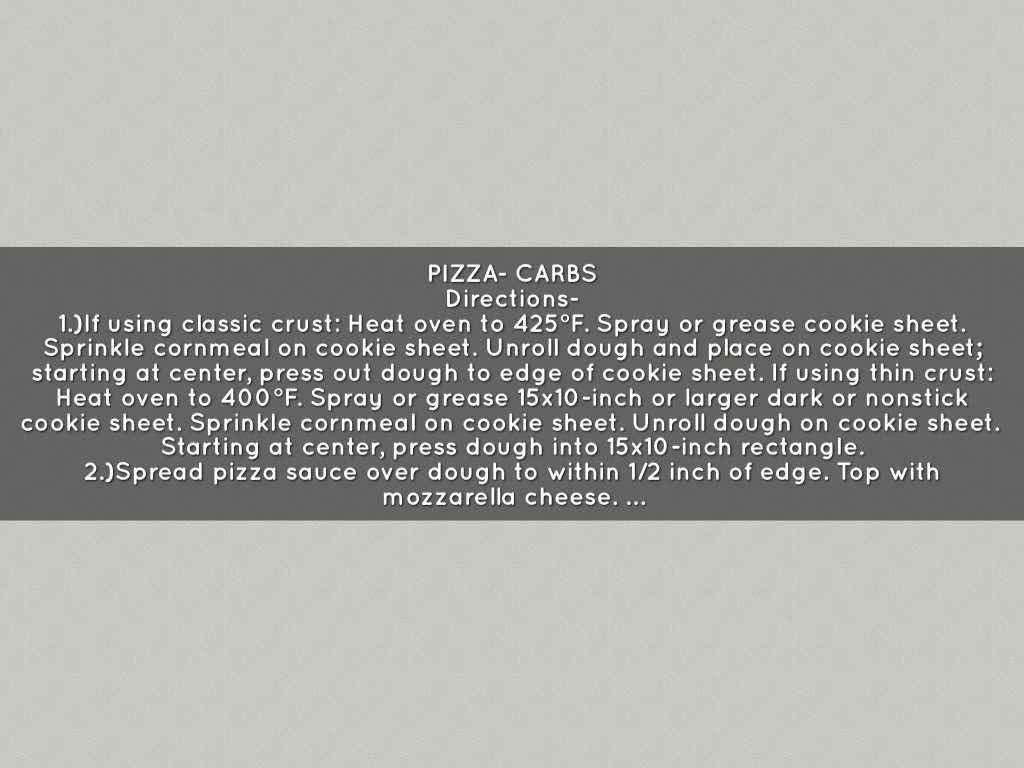 1.)If using classic crust: Heat oven to 425°F. Spray or grease cookie sheet. Sprinkle cornmeal on cookie sheet. Unroll dough and place on cookie sheet; starting at center, press out dough to edge of cookie sheet. If using thin crust: Heat oven to 400°F. Spray or grease 15x10-inch or larger dark or nonstick cookie sheet. Sprinkle cornmeal on cookie sheet. Unroll dough on cookie sheet. Starting at center, press dough into 15x10-inch rectangle.