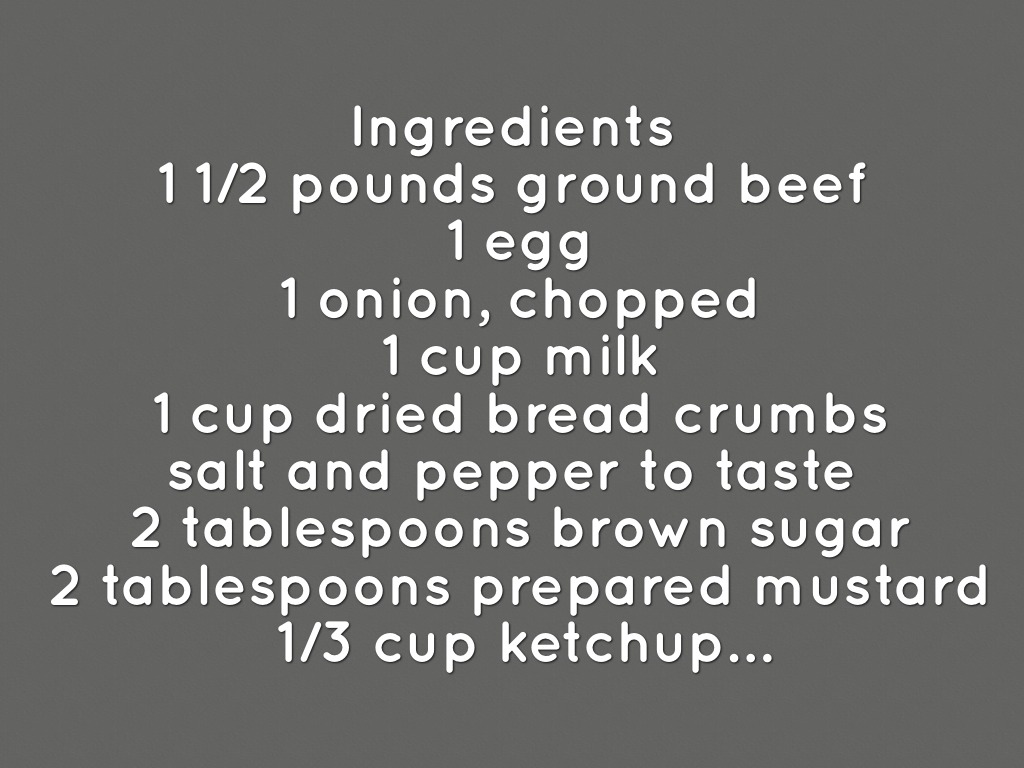 In a separate small bowl, combine the brown sugar, mustard and ketchup. Mix well and pour over the meatloaf.