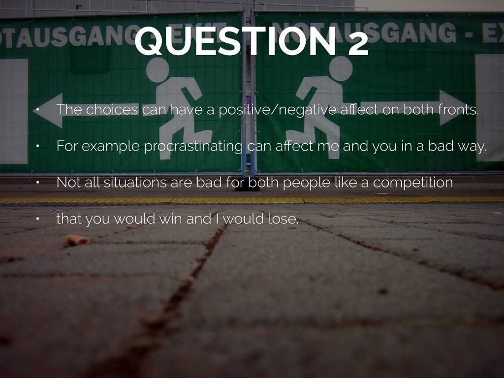 For example procrastinating can affect me and you in a bad way.
