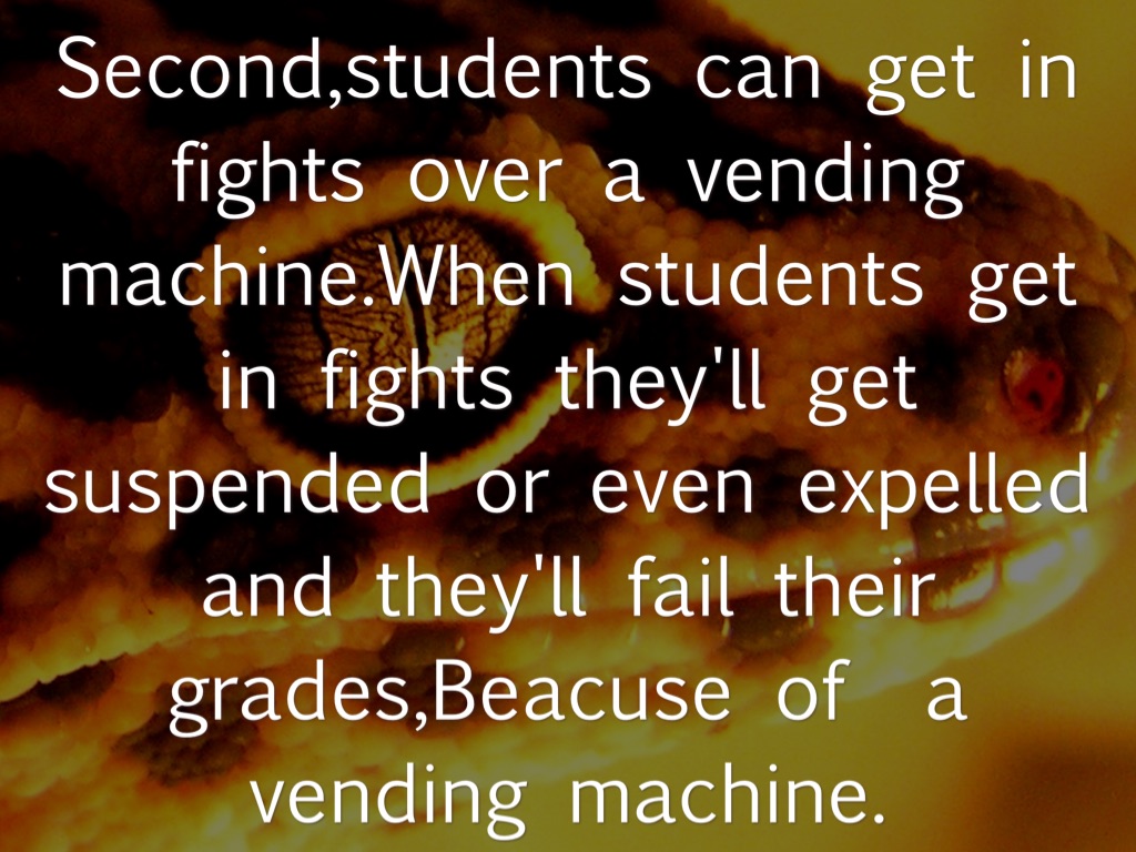 Second,students can get in fights over a vending machine.When students get in fights they'll get suspended or even expelled and they'll fail their grades,Beacuse of a vending machine.