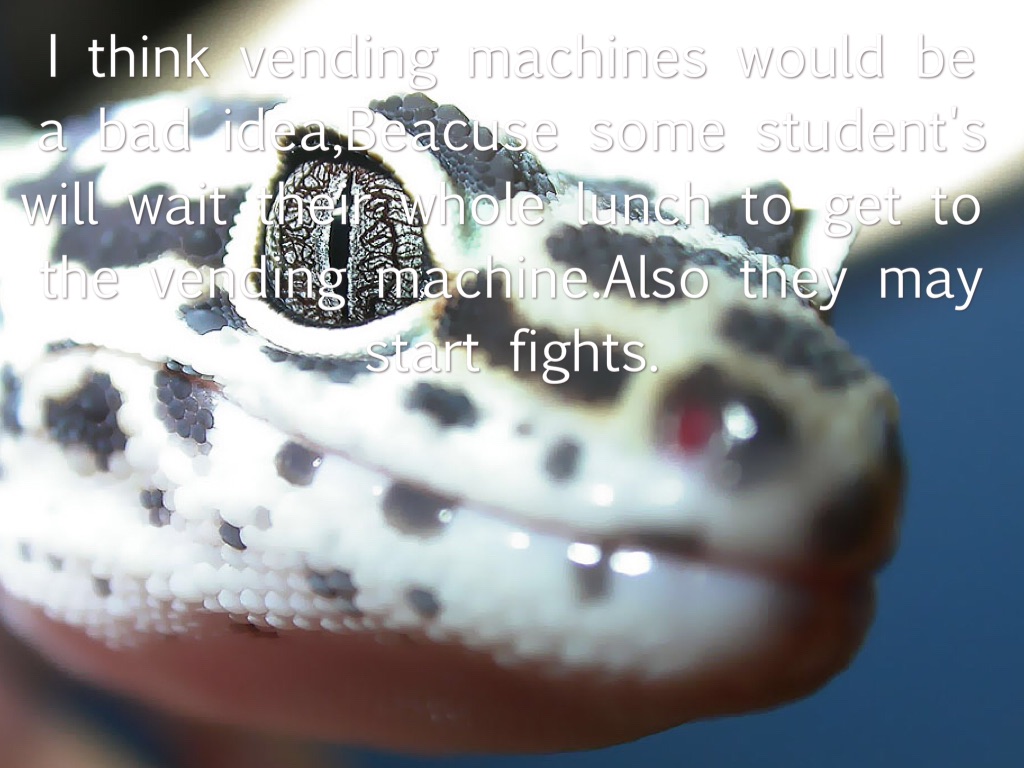 I think vending machines would be a bad idea,Beacuse some student's will wait their whole lunch to get to the vending machine.Also they may start fights.