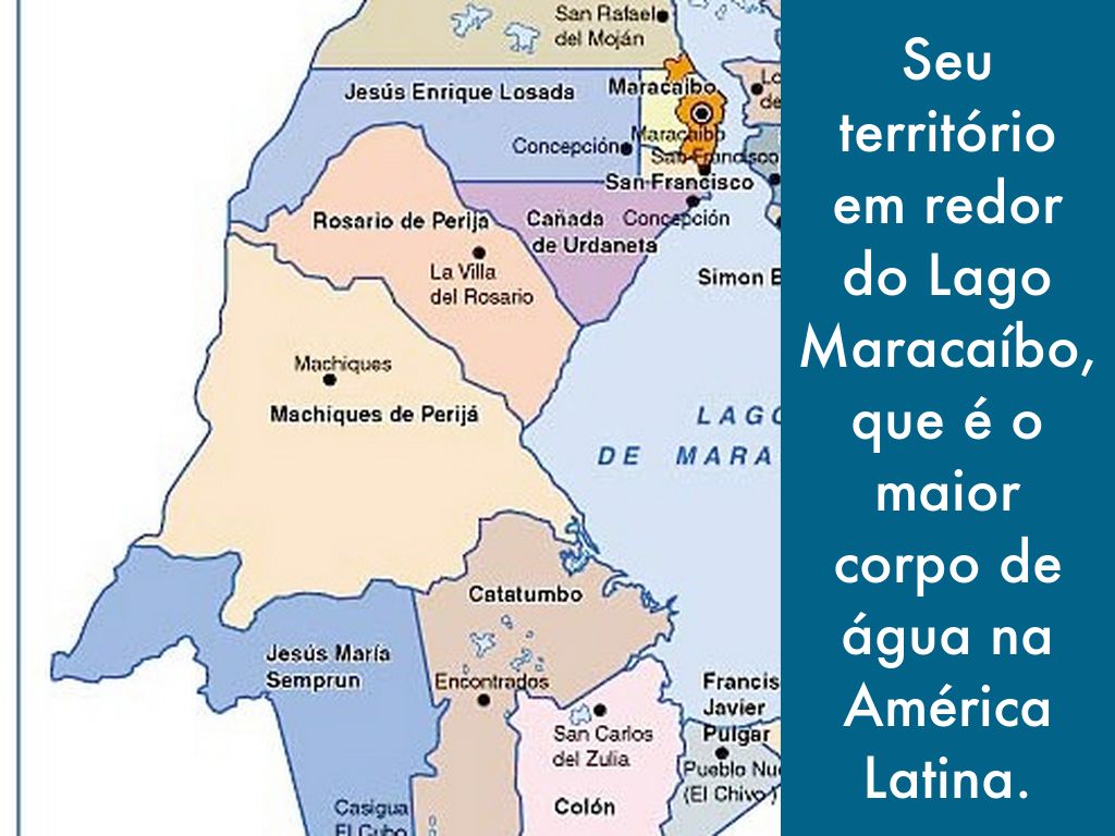 Seu território em redor do Lago Maracaíbo, que é o maior corpo de água na América Latina.