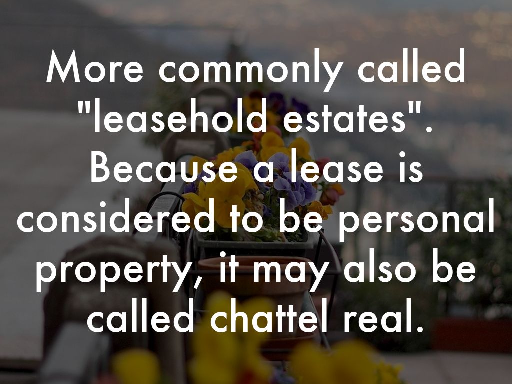 More commonly called "leasehold estates". Because a lease is considered to be personal property, it may also be called chattel real.