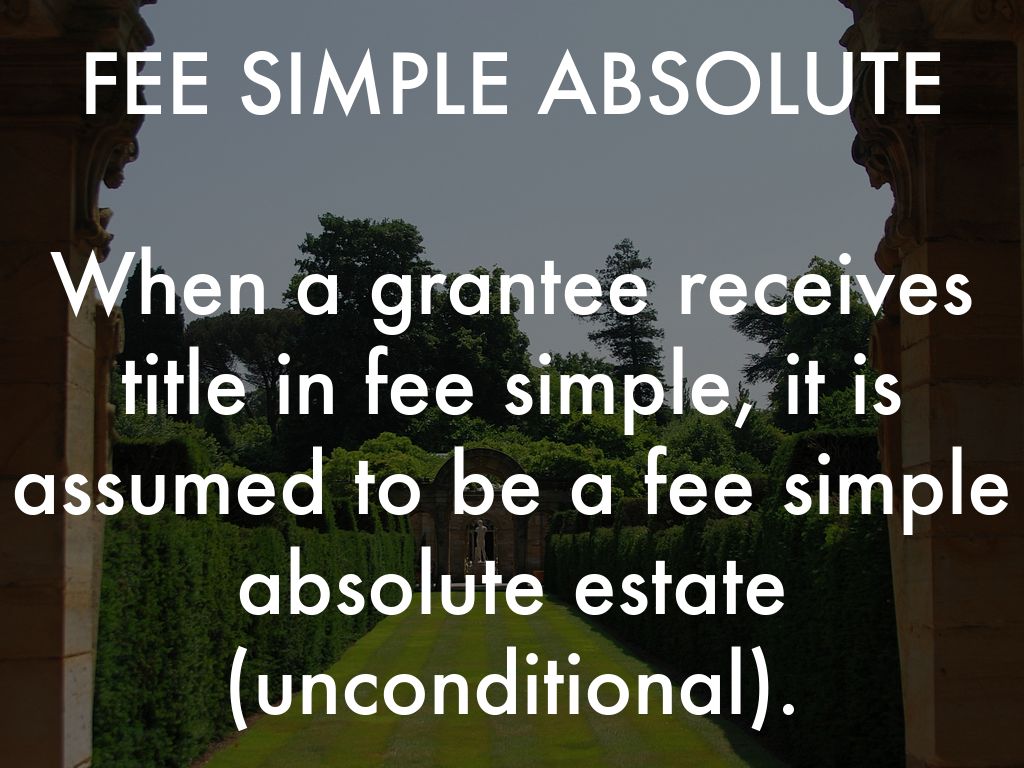 When a grantee receives title in fee simple, it is assumed to be a fee simple absolute estate (unconditional).