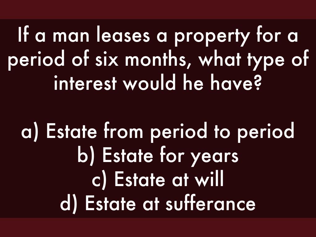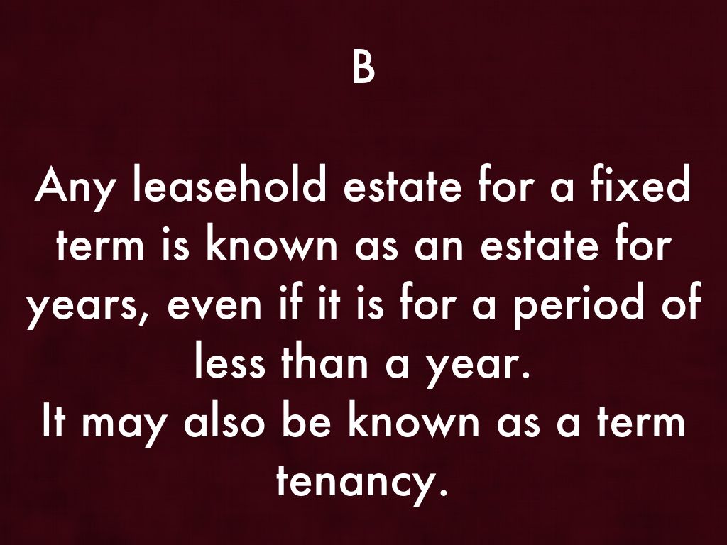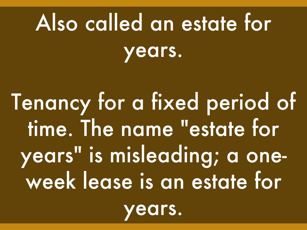 Any leasehold estate for a fixed term is known as an estate for years, even if it is for a period of less than a year.