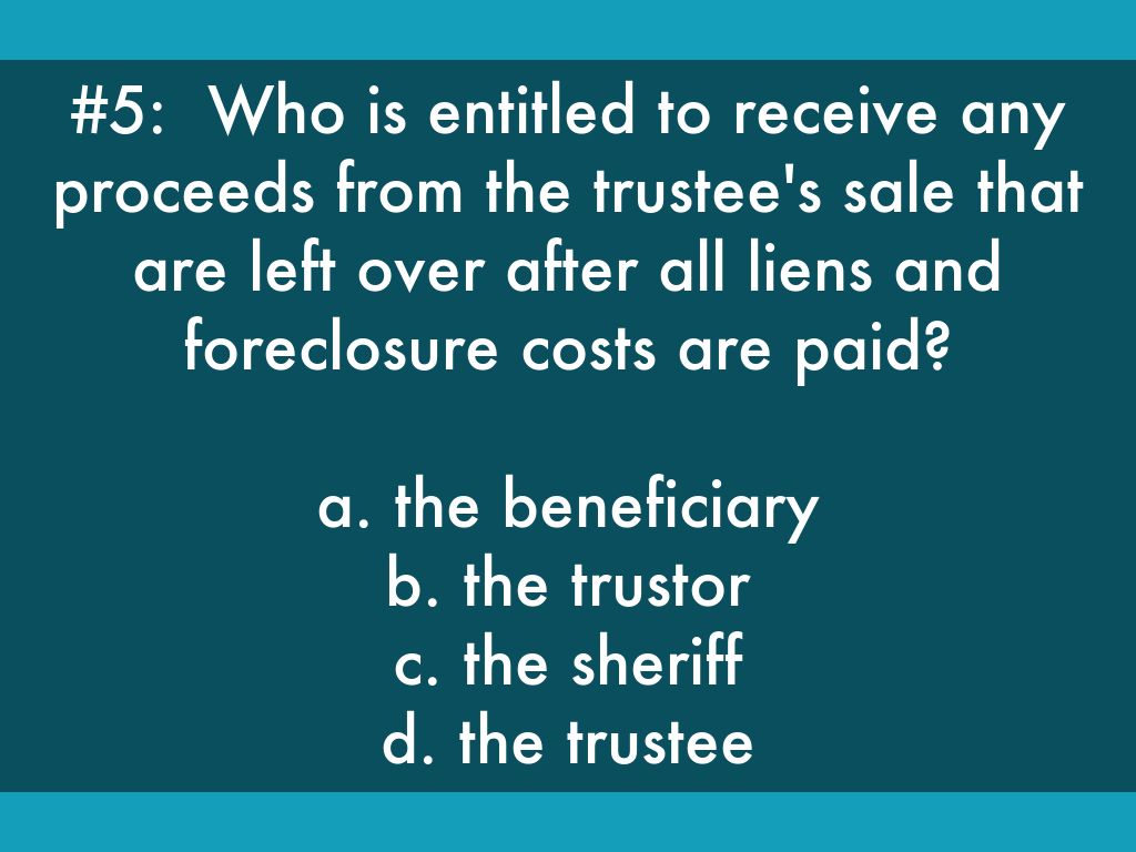 #5: Who is entitled to receive any proceeds from the trustee's sale that are left over after all liens and foreclosure costs are paid?