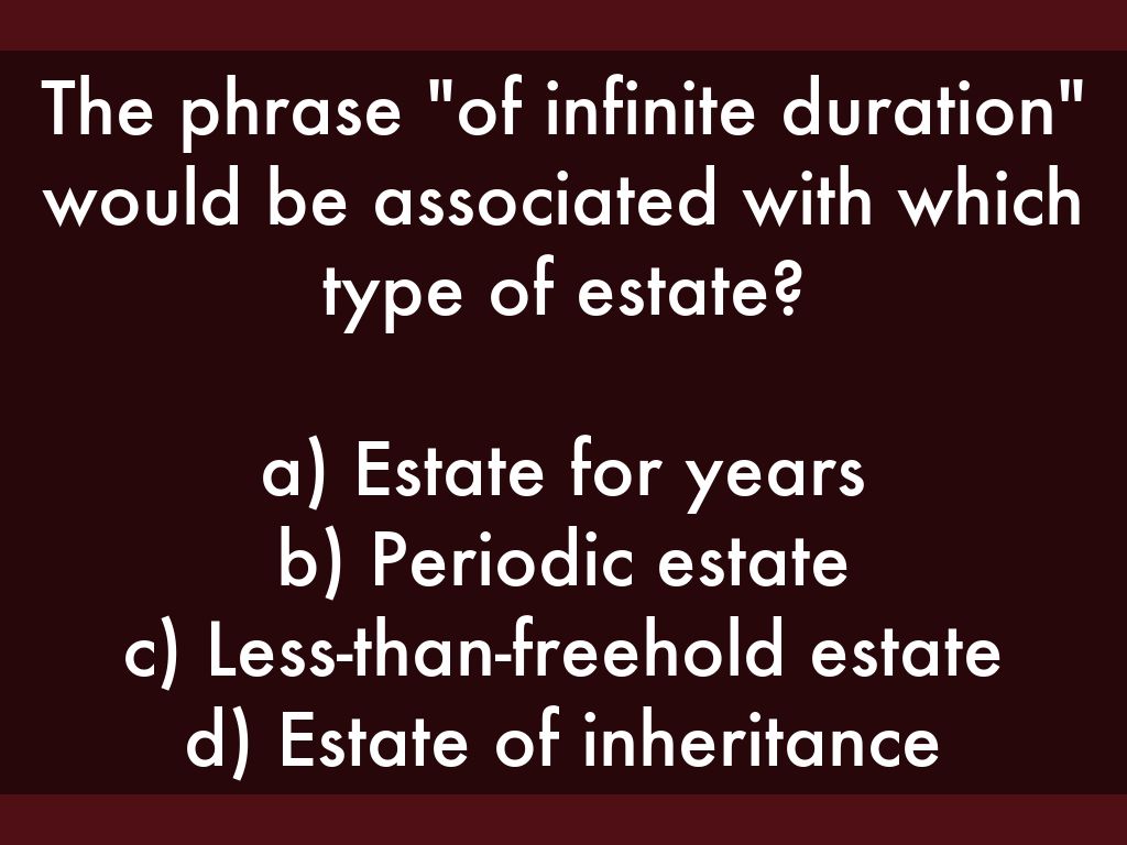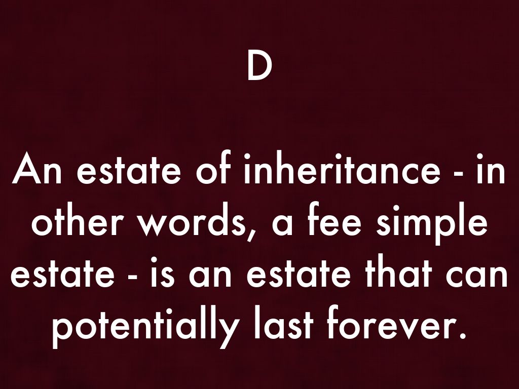 An estate of inheritance - in other words, a fee simple estate - is an estate that can potentially last forever.