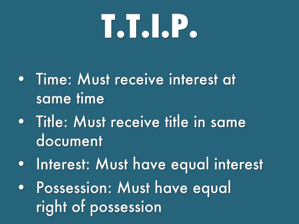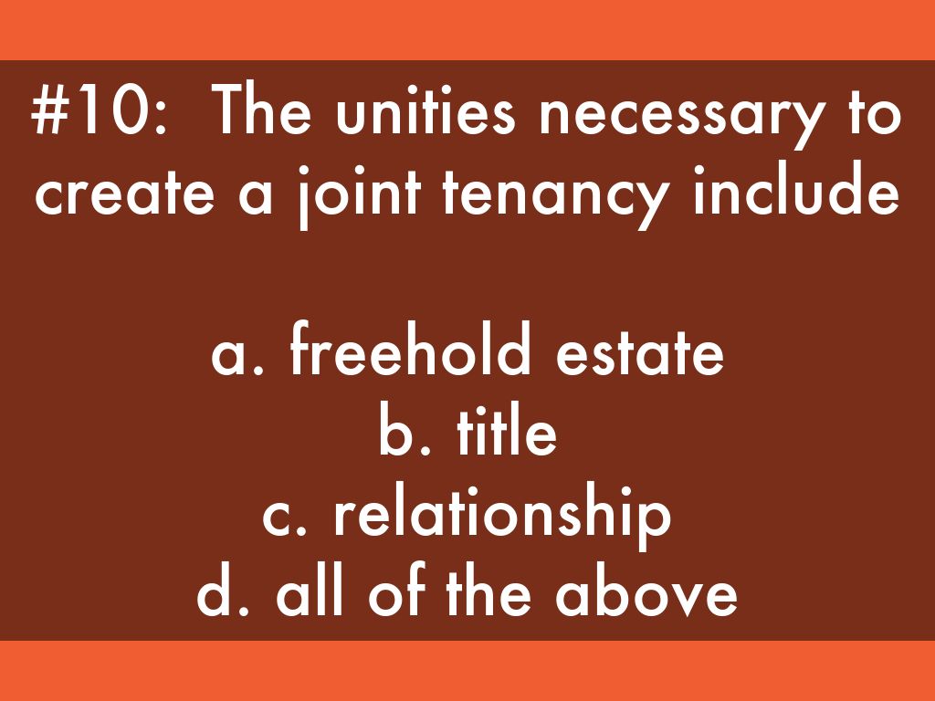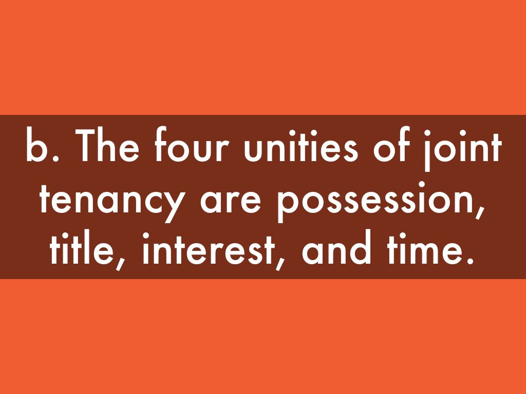 b. The four unities of joint tenancy are possession, title, interest, and time.