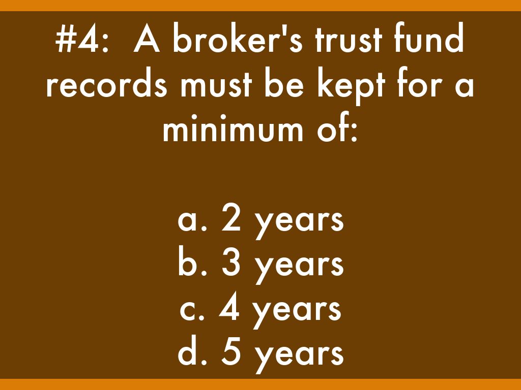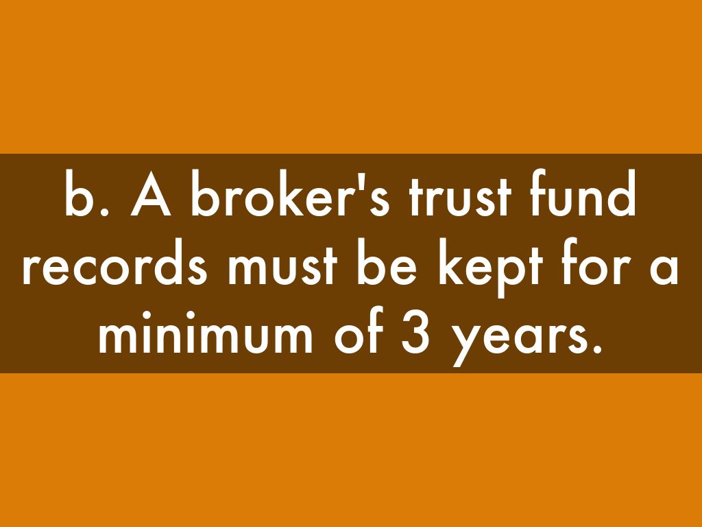 b. A broker's trust fund records must be kept for a minimum of 3 years.