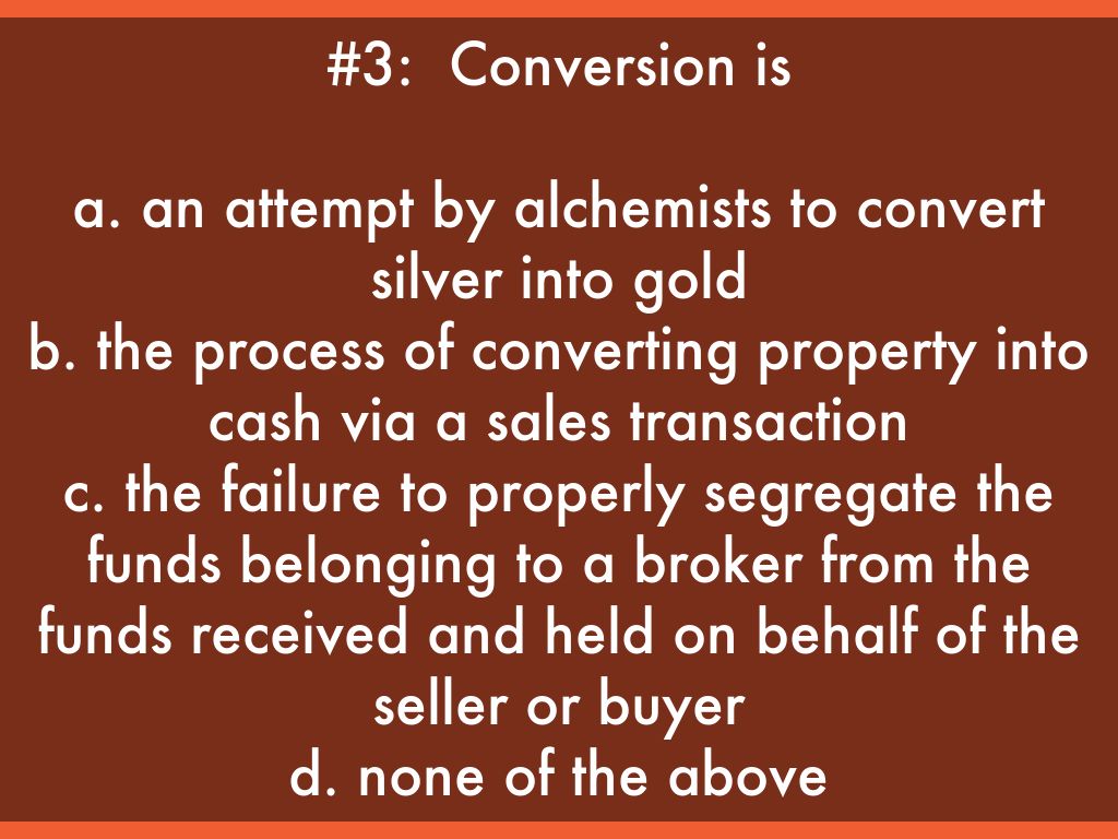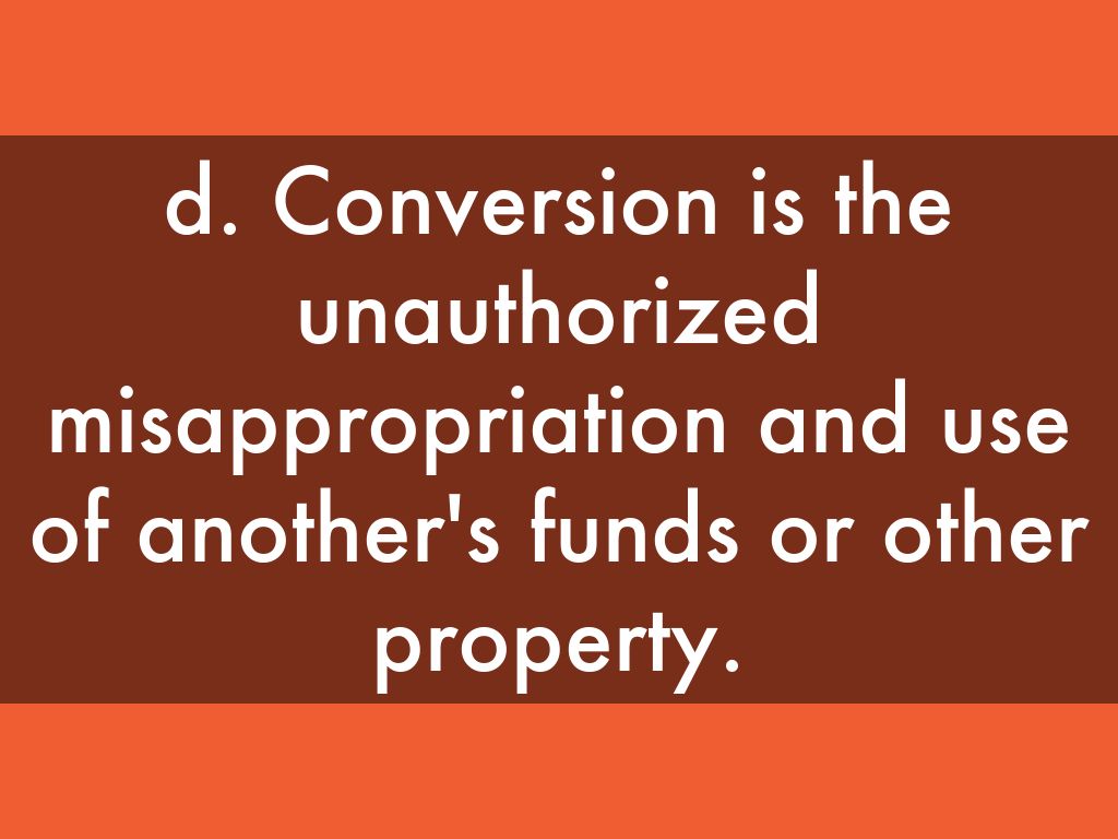 d. Conversion is the unauthorized misappropriation and use of another's funds or other property.