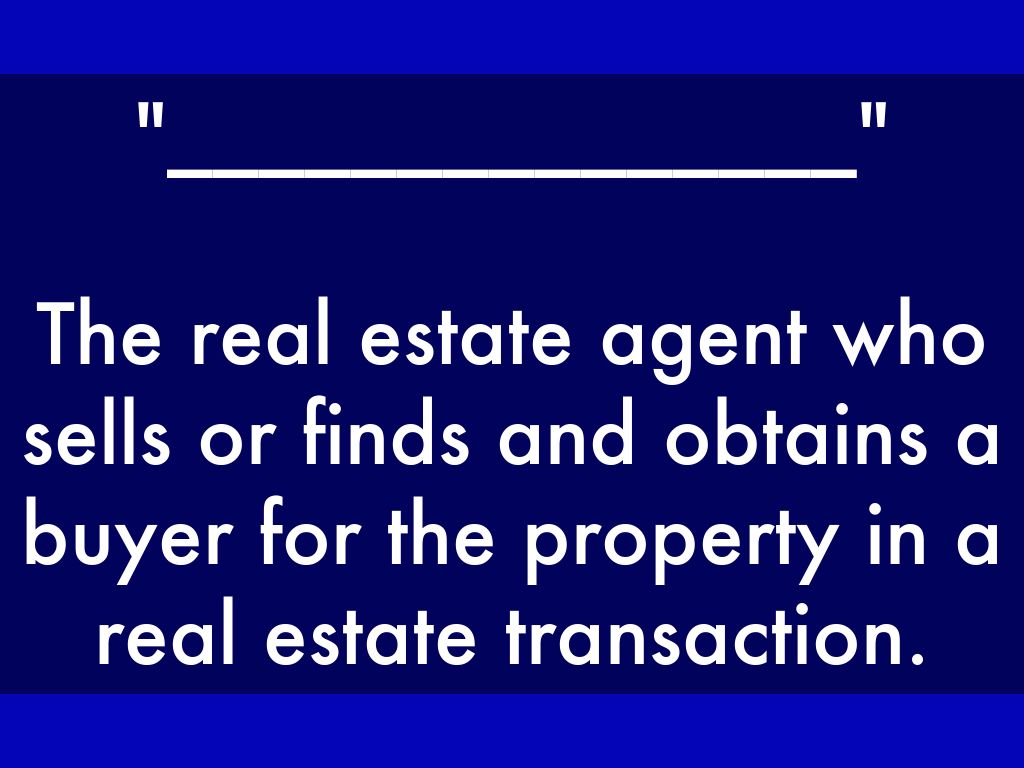 The real estate agent who sells or finds and obtains a buyer for the property in a real estate transaction.