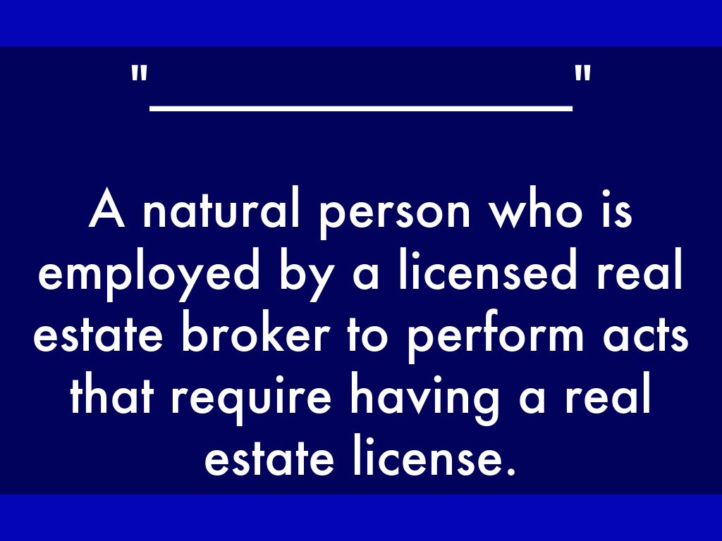 A natural person who is employed by a licensed real estate broker to perform acts that require having a real estate license.