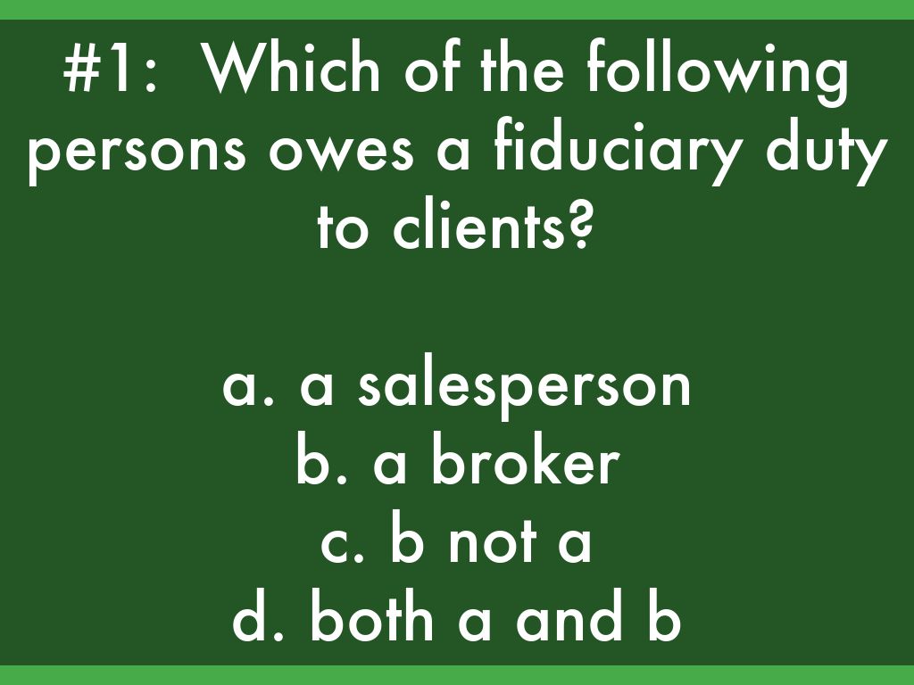 #1: Which of the following persons owes a fiduciary duty to clients?