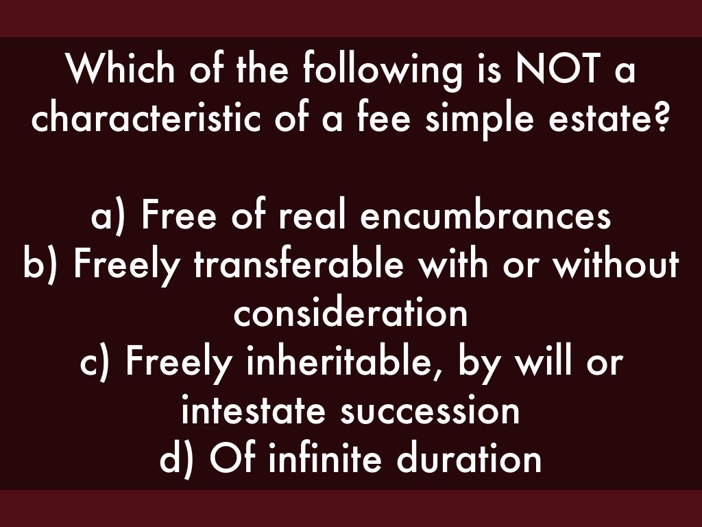 Even though some fee simple estates have no encumbrances, that isn't a necessary characteristic of a fee simple estate.