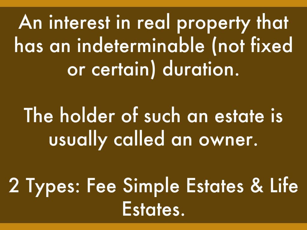 An interest in real property that has an indeterminable (not fixed or certain) duration.