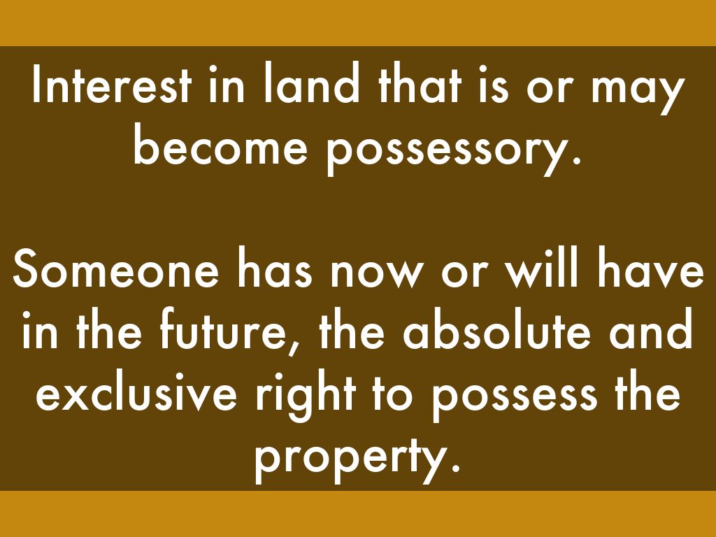 Someone has now or will have in the future, the absolute and exclusive right to possess the property.