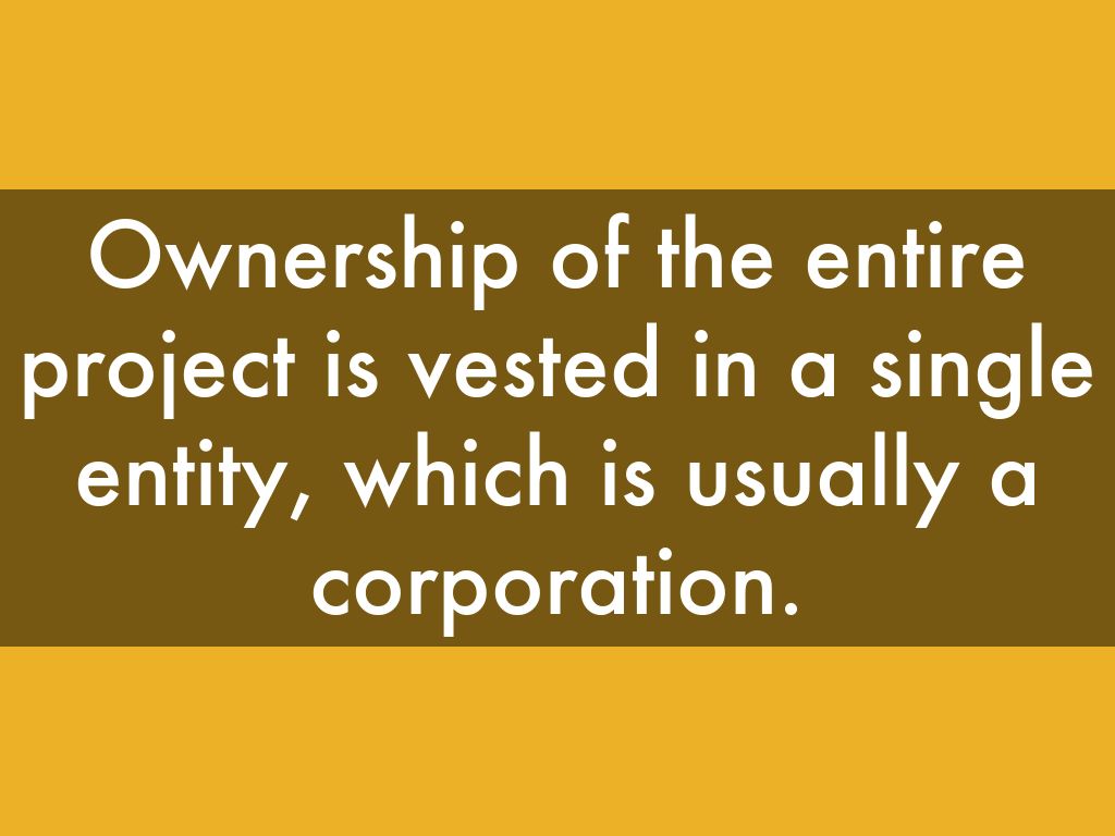 Ownership of the entire project is vested in a single entity, which is usually a corporation.