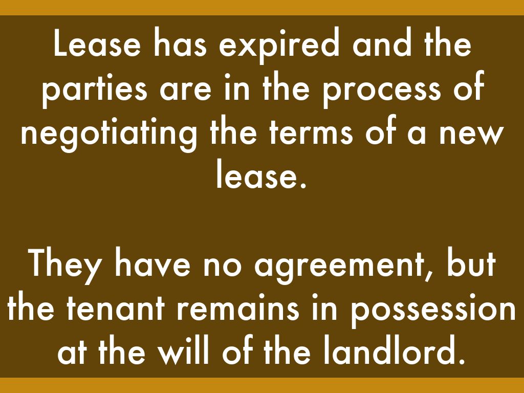 They have no agreement, but the tenant remains in possession at the will of the landlord.