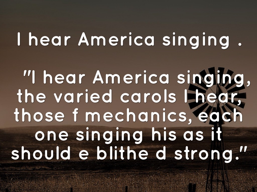 "I hear America singing, the varied carols I hear, those f mechanics, each one singing his as it should e blithe d strong."