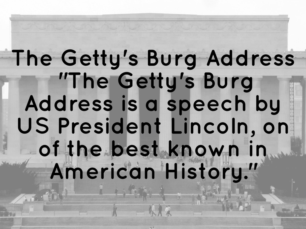 "The Getty's Burg Address is a speech by US President Lincoln, on of the best known in American History."