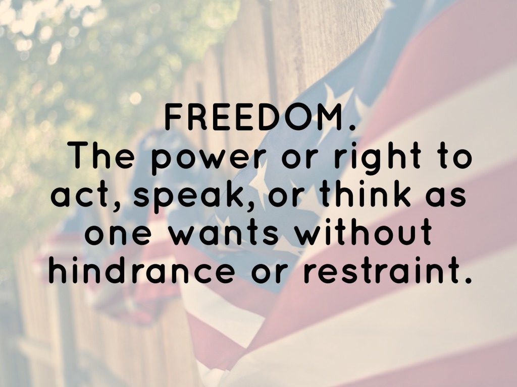The power or right to act, speak, or think as one wants without hindrance or restraint.