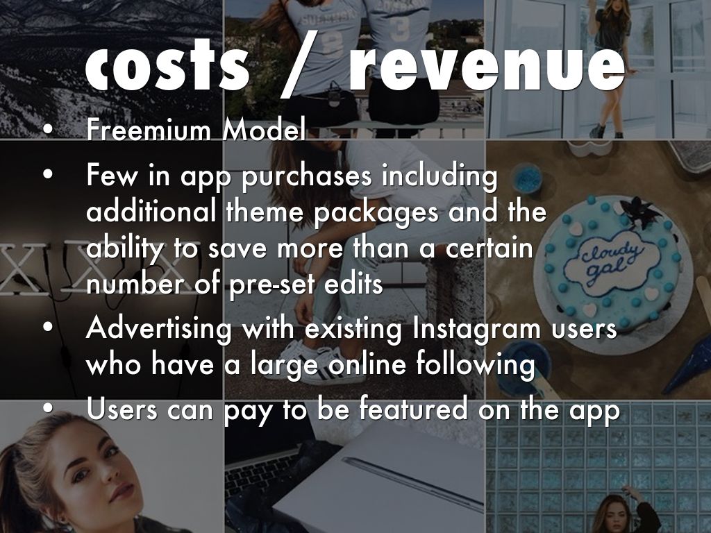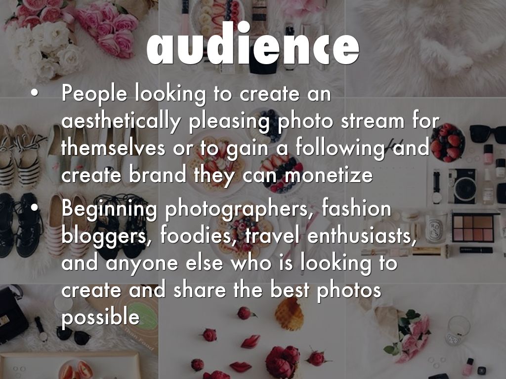 • People looking to create an aesthetically pleasing photo stream for themselves or to gain a following and create brand they can monetize